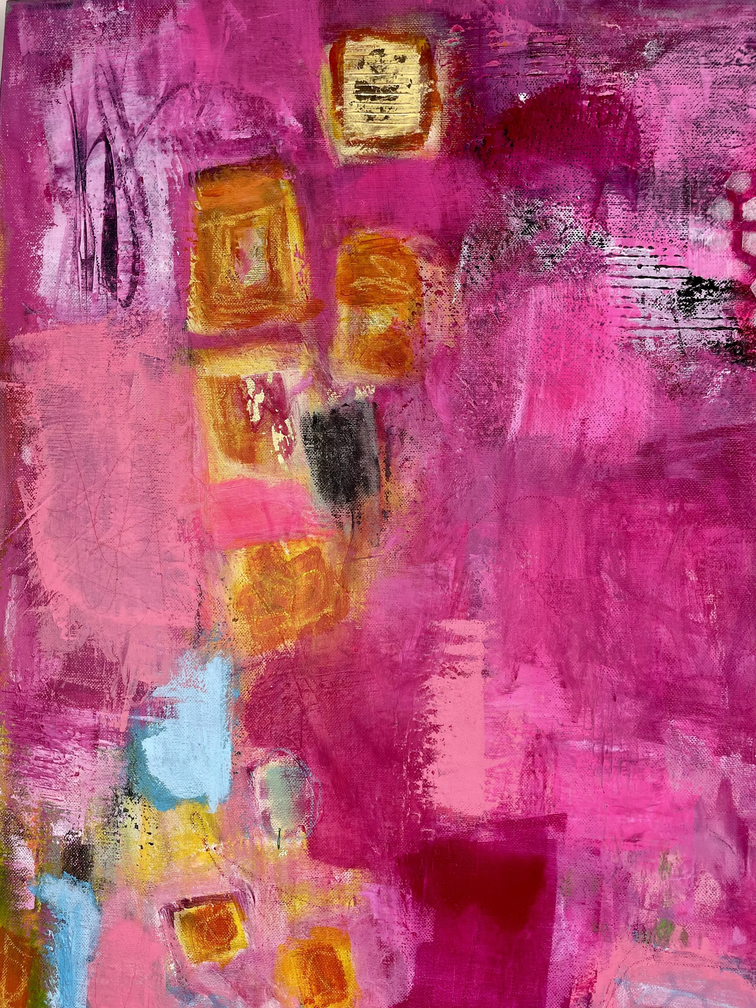 120 x 100 x 3,5 cm / acrylic, pastel, gold leaf on canvas / 2024