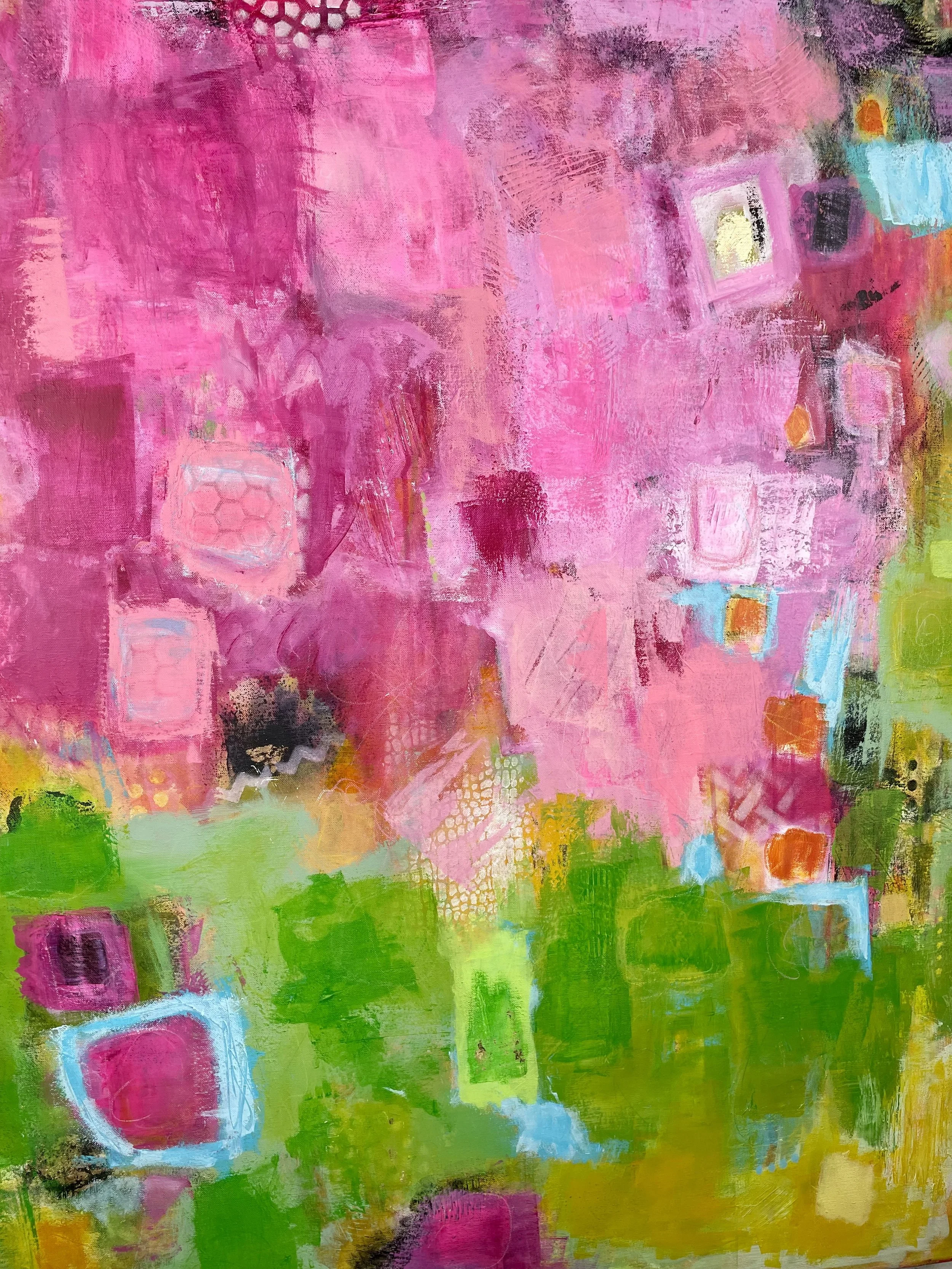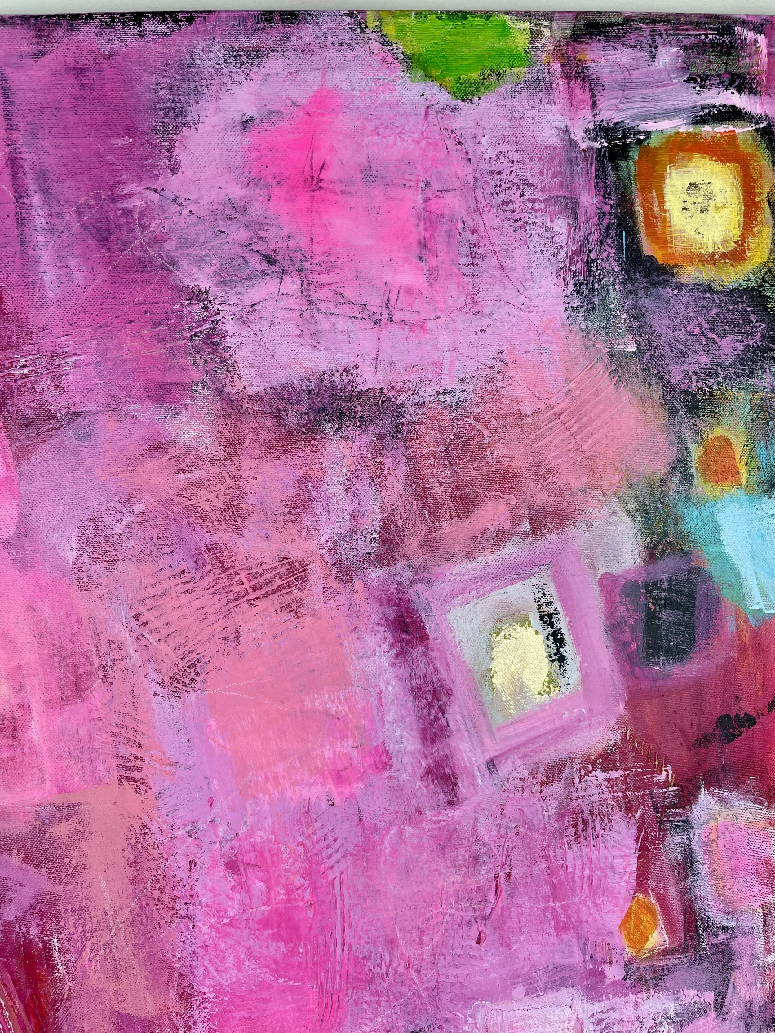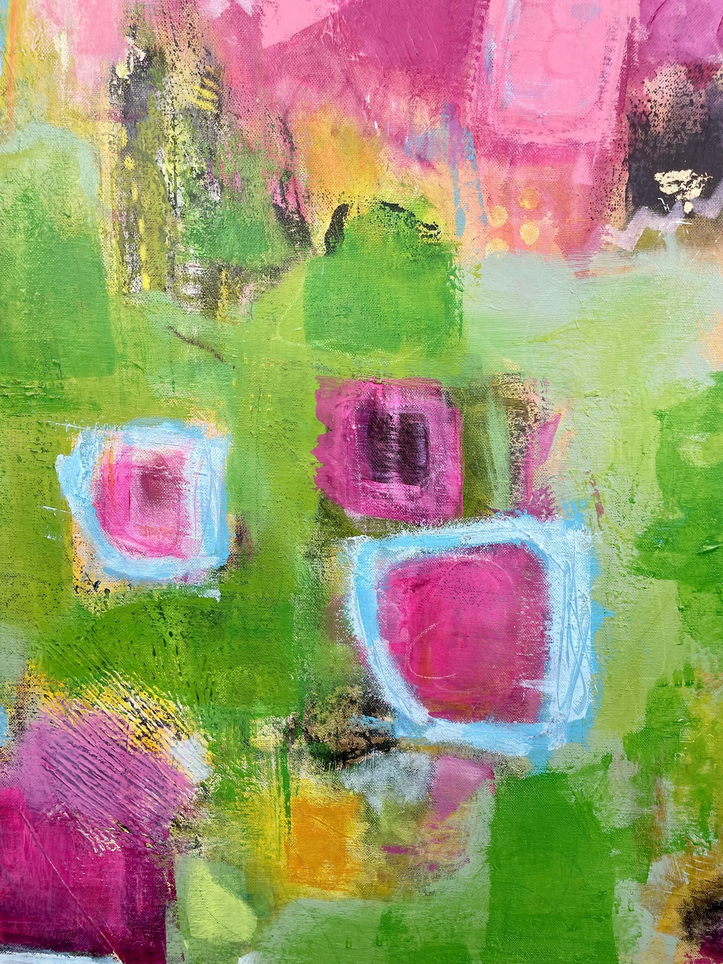 Titled 'Déjà Vu,' this piece was born from a peculiar and wondrous sensation experienced during its creation — a sense of déjà vu, as if I had already been there, in that exact moment. Beyond the myriad layers that comprise it, this painting is distinguished by the irregular application of gold leaf directly onto the wet paint. The imperfection of the gold leaf is intentional, creating an aged effect that mirrors the imperfect and fleeting nature of memory. Simultaneously, its serendipitous beauty symbolizes the magic of unexpected moments that illuminate our lives.