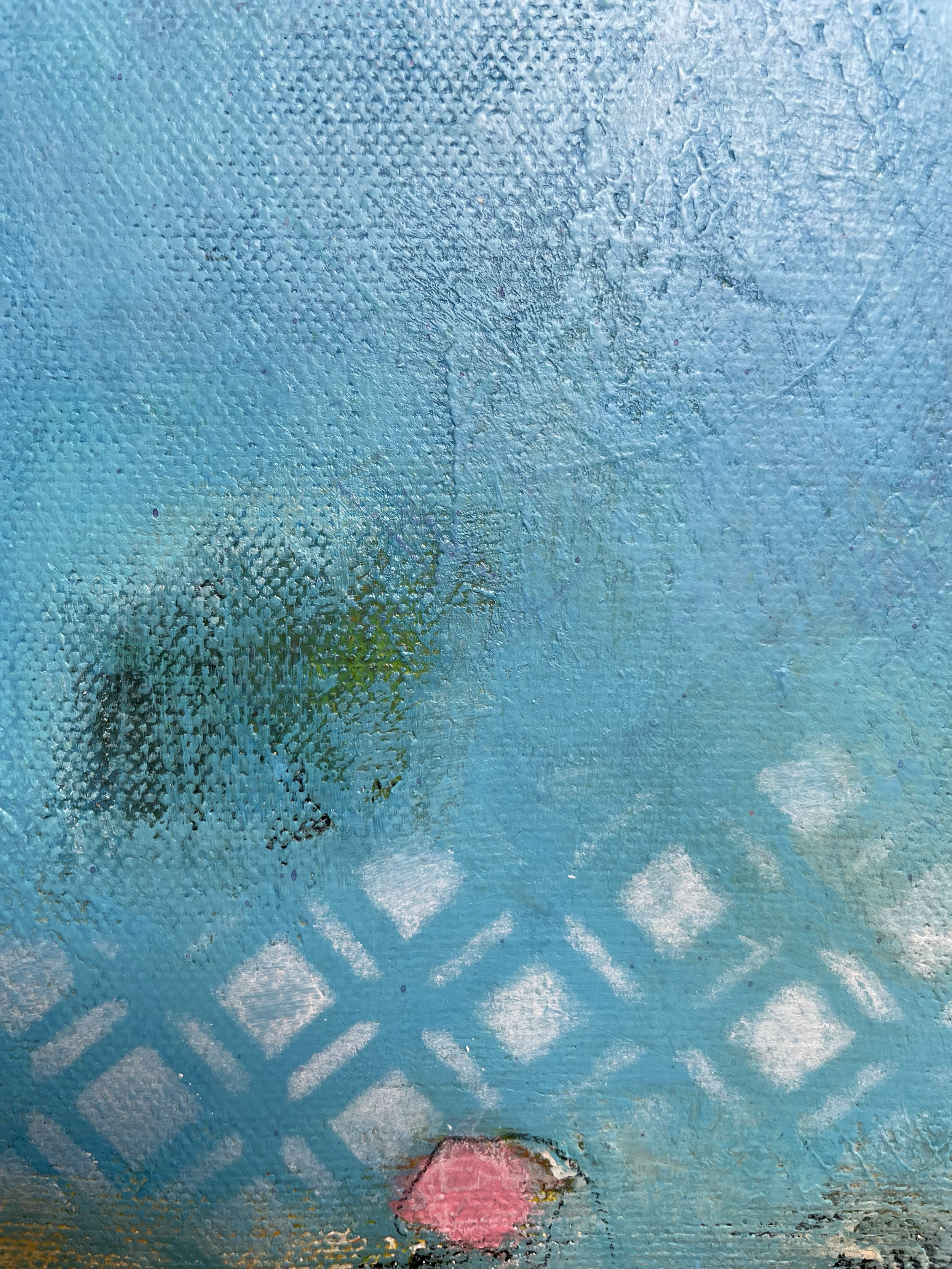 80 x 80 x 3,5 cm / acrylic, gold leaf, wax pastels, colored pencils and collage on canvas / 2025