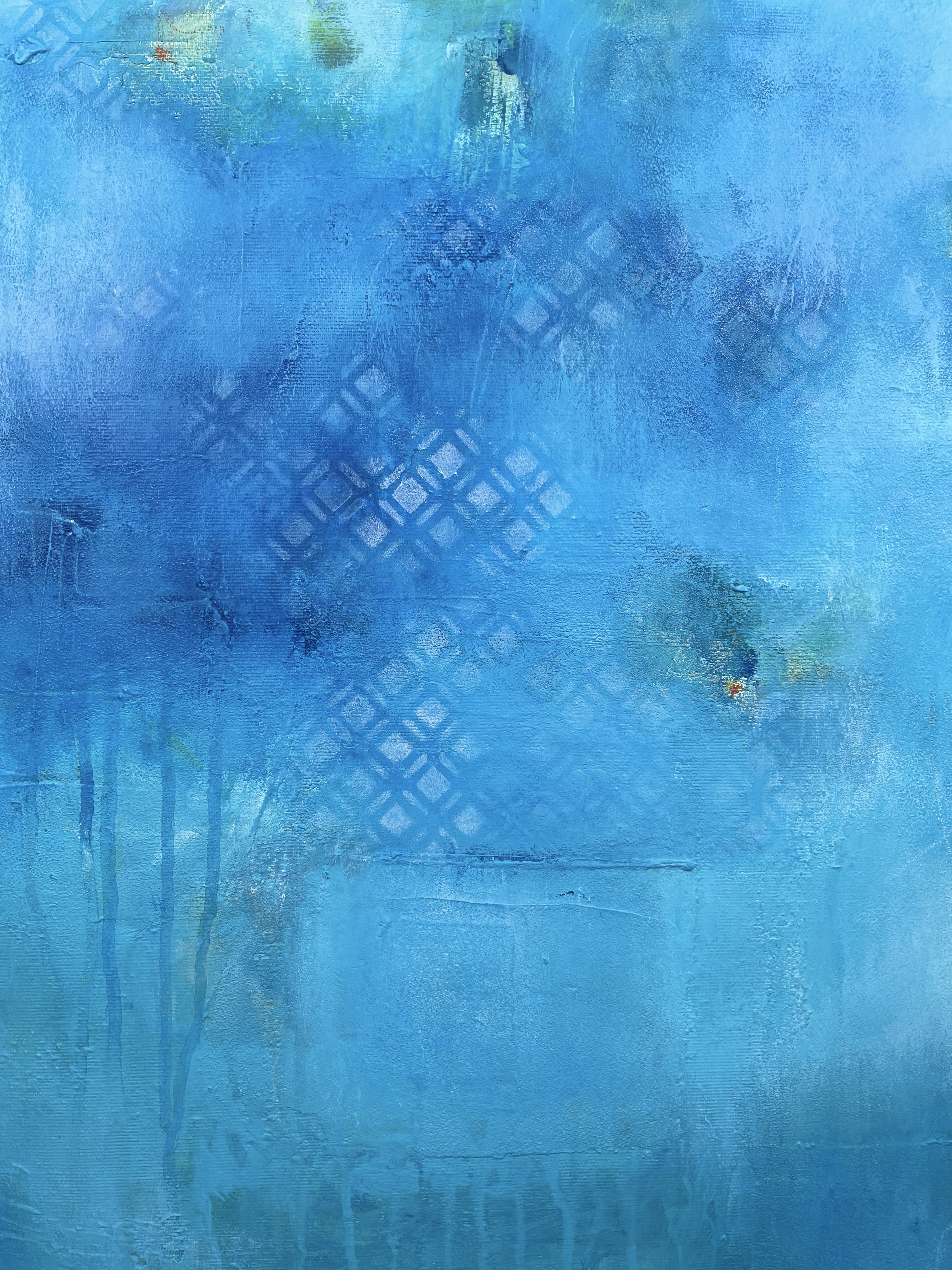 Finding oneself amidst floating memories, in the flow of past moments, to seek the strength to face what is happening today. This painting explores how the mind navigates through the past to find the resources needed for the present, using memory not only to remember but also to react.
