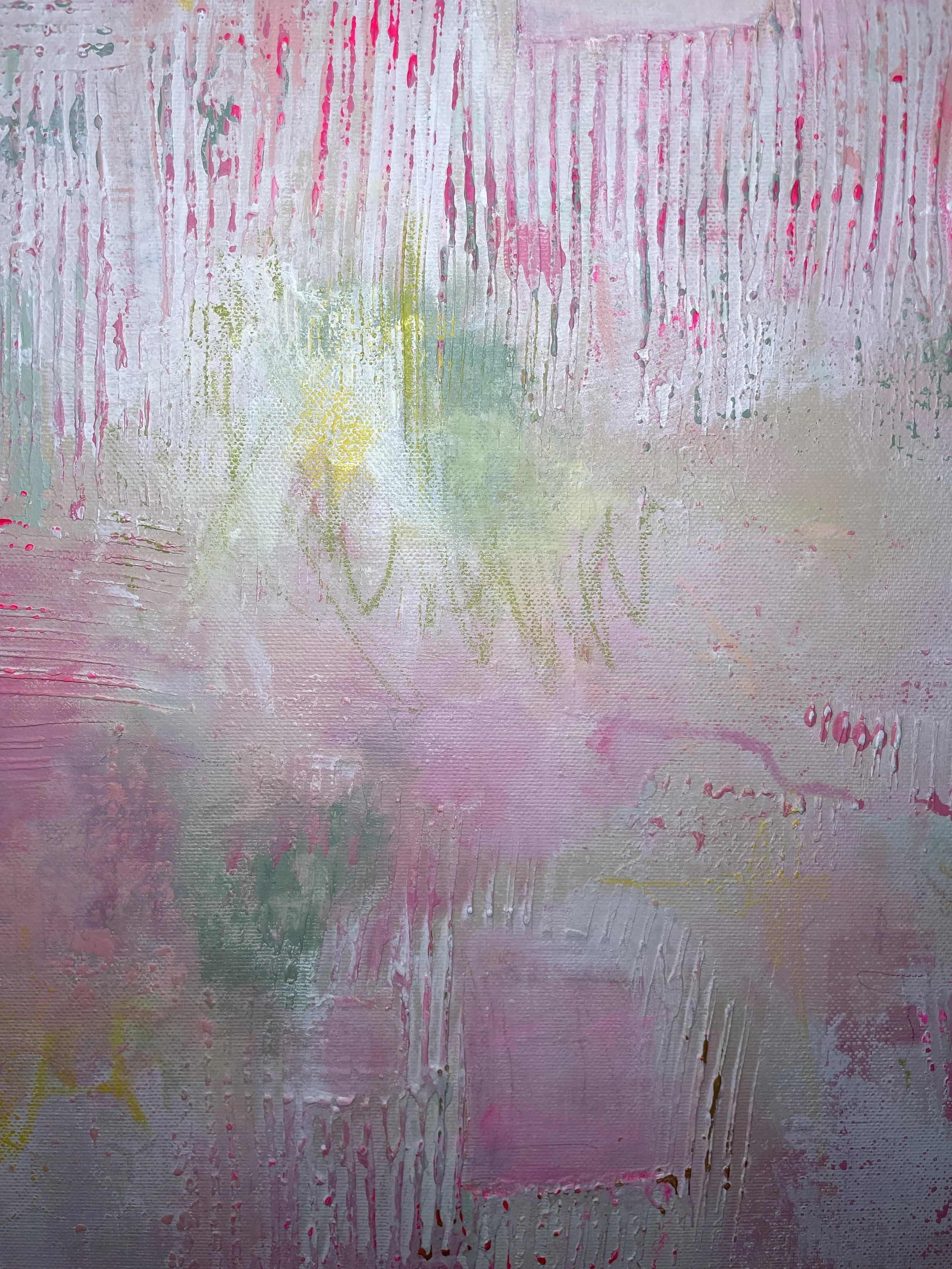 'Somewhere Perfect' is a visual invitation to serenity. Its harmonious composition of delicate colors and textures evokes a sense of tranquility and stillness, reminiscent of a quiet morning or a peaceful sanctuary. It beckons the viewer to pause, breathe, and find their own personal haven within its depths.